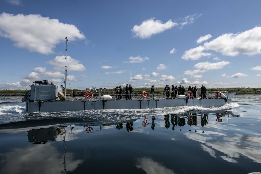 Le bureau de gestion de projet du navire de soutien interarmées assiste au test d’adaptation en usine dans l’eau réussi du système de connecteurs Sea to Shore